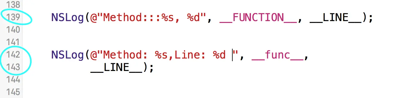 NSLog(@"%s, %d", __FUNCTION__, __LINE__);//直接定位到debug的函数名,以及当前代码所在文件中得行数。