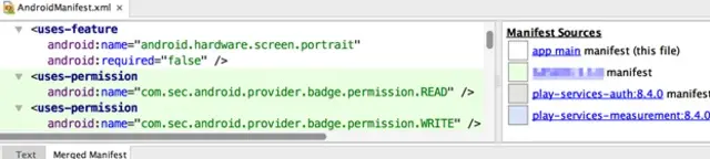 众所周知,我们开发时候在文本编辑器中看到的AndroidManifest.xml并非最终打包到应用中的AndroidManifest.xml文件。在打包时,编译器会自动地将你所使用的第三方依赖库中的譬如这些元素从它们自己的Manifests文件中抽取出来然后统一在主入口的AndroidManifest.xml文件中声明,关于这部分的详细说明可以参考这里。