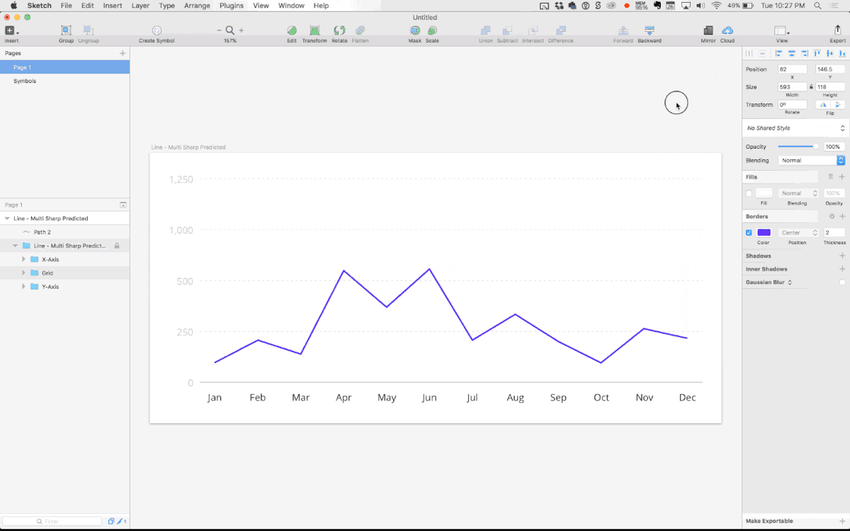 I was working on designing a scatter plot and was getting really tired of duplicating data points and dragging them around to form “the scatter”. If, however, you just want to create a chart that looks like a scatter plot to give dev something to reference, this method was made for you.