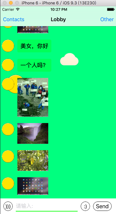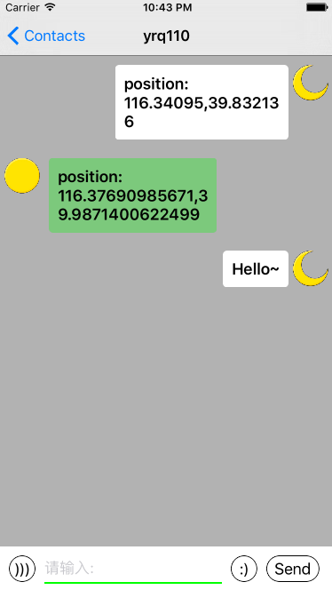 可以输入文字聊天,可以选择相册中的图片并发送,图片转成base64码存储。