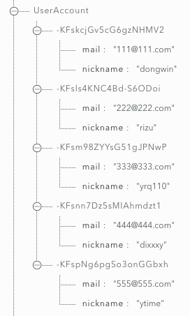 self.mailArray.append(i.1["mail"]!)后台数据存储: