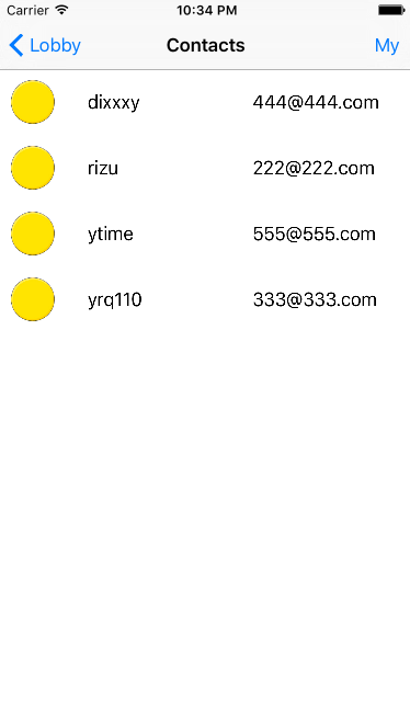 点击群聊界面左上角的contact进入通讯录,读取wilddog端的UserAccount数据: