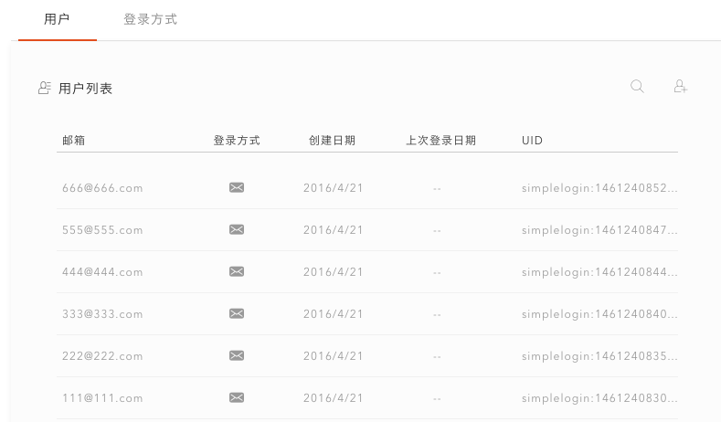 方便起见,直接使用wilddog的身份认证功能添加用户。