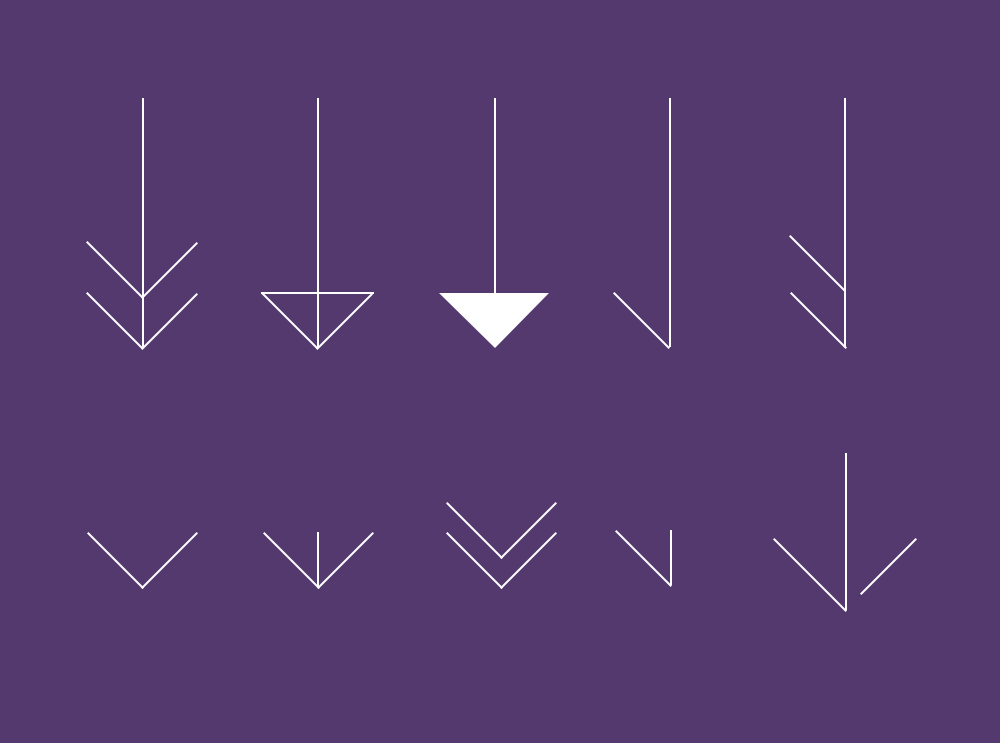 从这枚箭头中,我们可以看到,通过线的视觉导向作用,最长的线引领你的视觉从左滑到右,而右端的箭头上的小尖角的作用更指向了右方。利用这个原理,你就能创作出更多的其他样式的箭头来引领视线。
