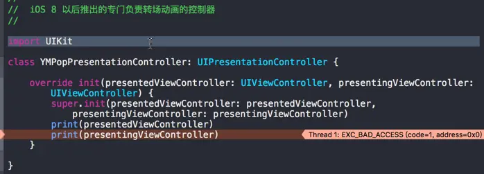presentingViewController 会报一个野指针的错误,这是 Xcode 的 bug。