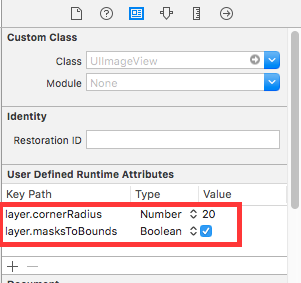 self.iconImage.layer.masksToBounds = YES;或者是在xib&storyboard中点击要设置圆角的图片: