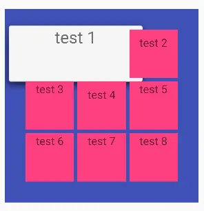其实一开始群里大神和我提过这个方法,但是在GridLayout中使用会导致子view的位置错乱,调用bringToFront()方法的view会移动到最后所以开始放弃了。google真是很强大,将问题复制进去搜到了一个结果,StackOverflow这个回答,里面答案是用RelativeLayout代替LinearLayout(这里我们代替GridLayout),看到这个回答后,我简单试了下FrameLayout下调用发现也不会有错乱。所以在这两个Layout中选择一个!!!我毅然决然的选择了RelativeLayout(因为还要实现网格布局那不是)。