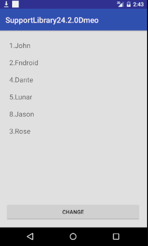 可以看到,当我们点击按钮的时候,这个RecyclerView所显示的集合发生了改变,有的元素被增加了(8.Jason),也有的元素被移动了(3.Rose),甚至是被修改了(2.Fndroid)。RecyclerView对于每个Item的动画是以不同方式刷新的: