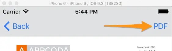 你会发现该工程中的很多功能已经实现了。运行程序,首先看到的就是用来展示新建发票的视图控制器InvoiceListViewController。在该视图控制器中你可以通过右上角的+按键来创建新的发票。点击该视图中的任一发票就会跳转到预览视图。在预览视图中我们需要实现PDF文档的预览和打印功能。当然,预览视图里面的功能还等着我们去完成,这也是文章的重点。最后,在展示视图中我们可以通过左划来实现对发票的删除操作,具体看下面演示截图: