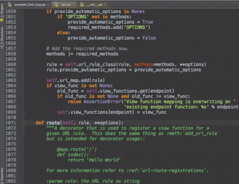 python是解释性语言,不需要反编译就可以看到源代码,利于查找bug。在找bug的时候,最重要的是定位bug的位置,比较直观的bug是通过阅读异常可以定位到bug的位置。而有的异常信息,例如:AttributeError: 'NoneType' object has no attribute 'get' 会让你觉得很费解,因为你本以为这个肯定有值,怎么就是None了呢?这个时候,你可以在异常定位的位置前面,把这个object的值打印出来,重新调试。察看这个值到底是什么,然后一步步的向上找到,是什么地方操作了这个对象使得它的值为None,造成了这个异常(当然也可以使用通过ide调试模式进行排查,本文重点是阅读代码,所以就不介绍 打断点决解bug的方法 了)。