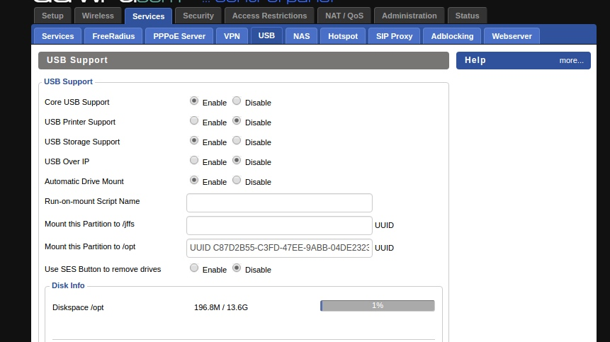 把U盘格式化为ext3,此处先让U盘自动加载,不要填UUID到/opt,刷新页面后会出现UUID,填到/opt并保存。重新拔插U盘后刷新页面。