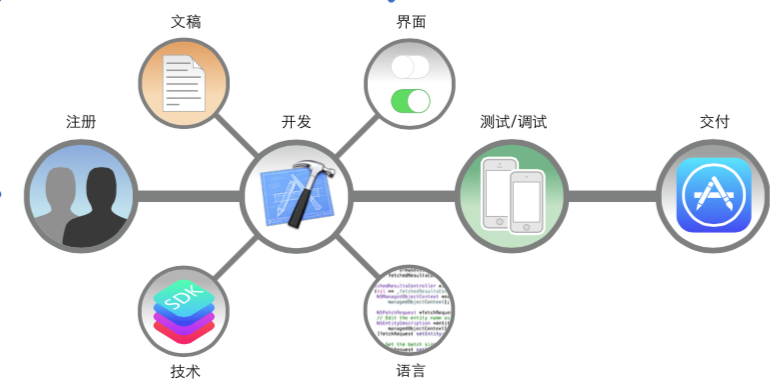 《App Distribution Guide 》(应用程序分发指南)中的“Managing Accounts”(管理帐户)这一章节会带您逐步完成注册为Apple开发者的过程。