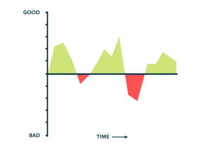 在这个领域额外进行的20年的研究,证明peak-end规律不但在痛苦的体验方面成立,在其他状态下也成立,包括开心的体验。当然,正如下图所示,某种体验可能是好的跟不好的混合,反应在y轴上的正负值。这样的表叫做体验侧写。