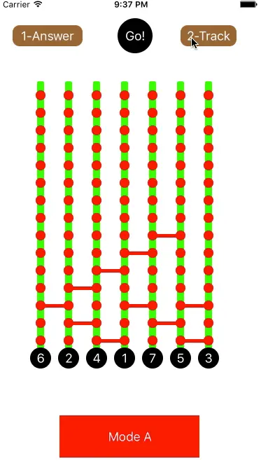 随机生成最终结果,你需要在合适的位置添加横线,使这些棋子通过横线倒着返回到正确的排好序的位置。