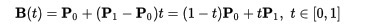 给定点P0、P1,线性贝塞尔曲线只是一条两点之间的直线。这条线由下式给出: