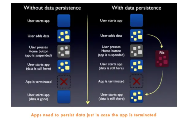 其实,我们并没有必要在模型每次改变时都要对属性列表进行一次读写操作,因为数据持久化是针对于app停止运行,或前后台切换的,因此,我们只需要在这些情况下对数据进行持久化保存即可。既然说到了前后台的切换,就引入了下一个主题:应用程序的声明周期。