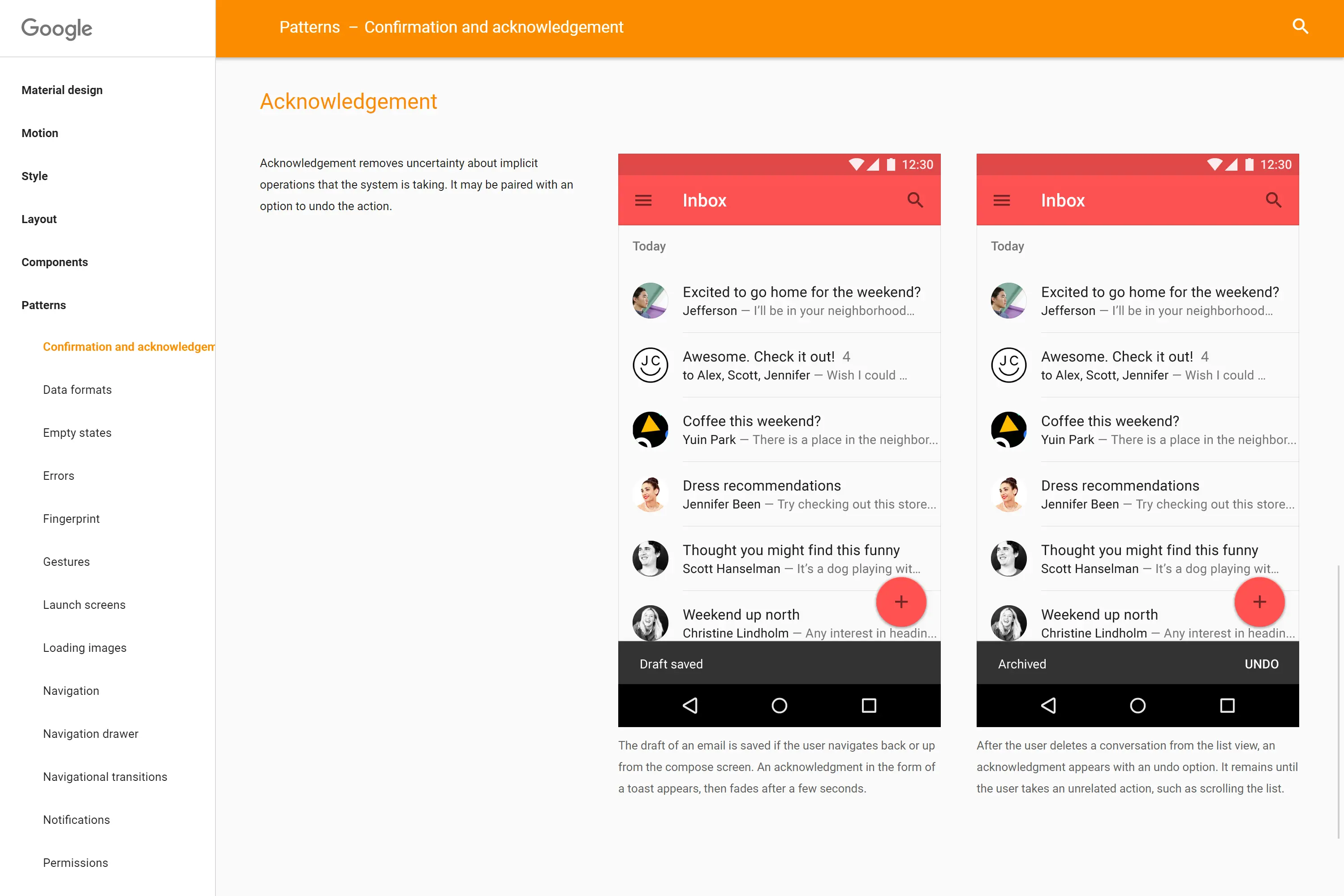 Confirmation and acknowledgement - Patterns - Material design guidelines