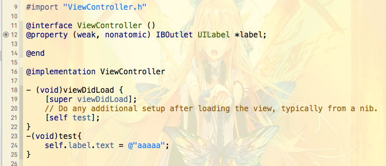 第一步:创建Demo,在ViewController里添加一个Label,声明一个test方法来给Label.text赋值