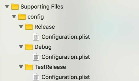 这里名字一样的好处是写代码方便,因为就只需要去读取“Configuration.plist”就可以了,如果名字不一样,还要分别去把对应环境的plist名字拼接出来才能读取。