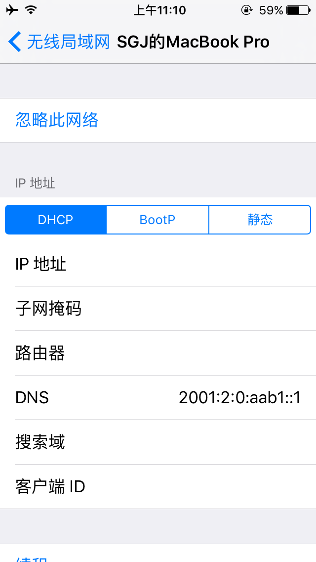 用你另一台iPhone链接你Mac所创建的IPv6测试网络