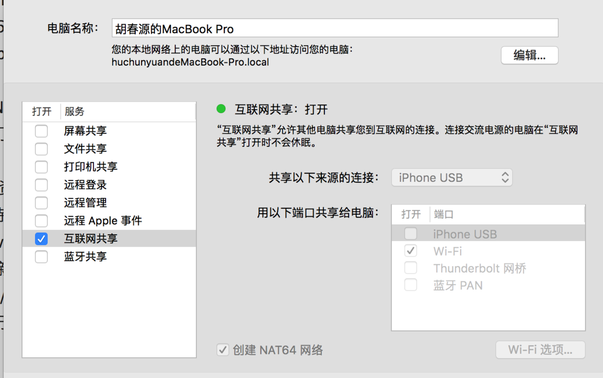 第五步:选择iPhone USB -> Wi-Fi -> 创建NAT64