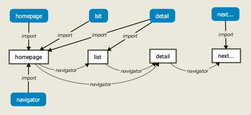 这样,每个 component 之间不会再有引用关系,不管页面间的跳转有多复杂,只需 navigator.push({id: XXX}) 就会跳转到指定的页面。