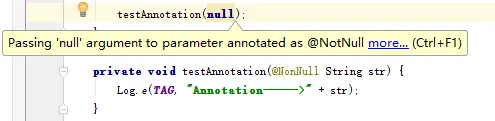 Android support library从19.1版本开始引入了一个新的注解库,它包含很多有用的元注解,你能用它们修饰你的代码,帮助你发现bug。Support library自己本身也用到了这些注解,所以作为support library的用户,Android Studio已经基于这些注解校验了你的代码并且标注其中潜在的问题。