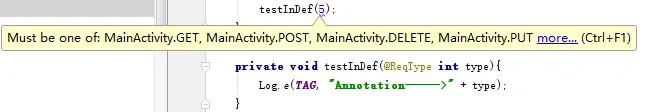 @IntDef和”typedef”作用非常类似,你可以创建另外一个注解,然后用@IntDef指定一个你期望的整型常量值列表,最后你就可以用这个定义好的注解修饰你的API了。
