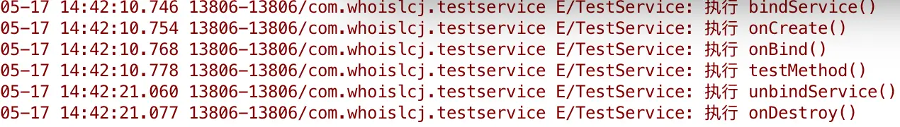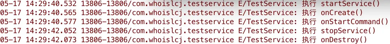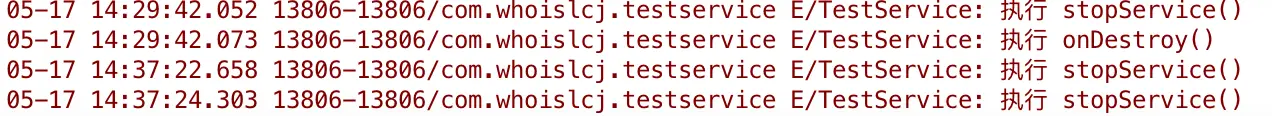 首先看下我们调用stopService() 看下运行结果如下:未执行onDestory()服务无法关闭;所有两者同时使用时先调用unbindService()然后再调用stopService()才能真正关闭服务