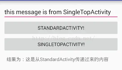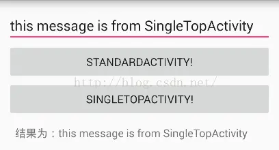 }此时,输入内容并点击SingleTopActivity按钮可以发现已经可以获取最新的数据了,结果如下所示: