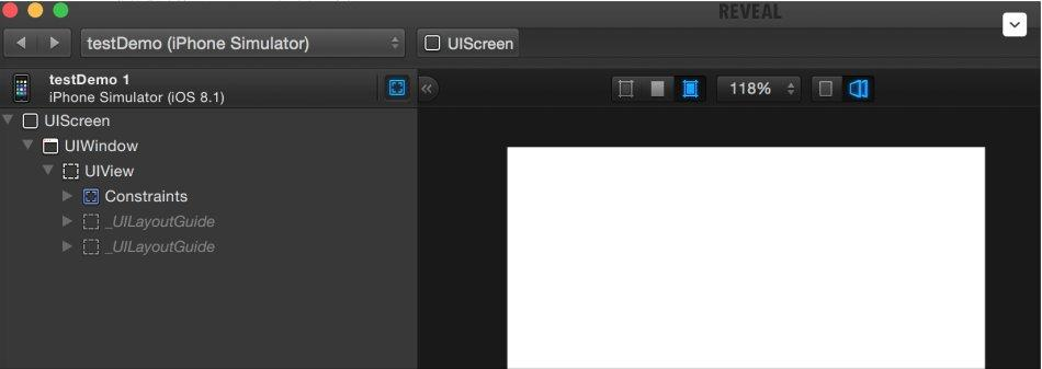 (5)运行工程,打开reveal 如果以上方法做的都对,就连接成功。可以选择模拟器了。