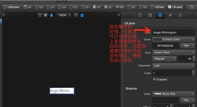 修改属性的时候,你甚至可以直观的在模拟器上看到结果,但是代码需要自己去Xcode中修改