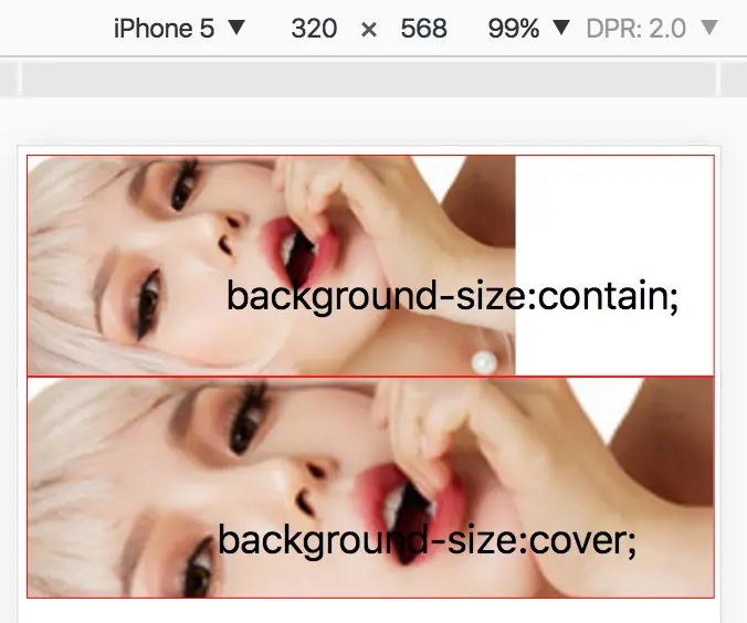 但是有时候元素的宽高比例是不确定的,比如有一张宽度为100%,高度为200px的图片。此时contain和cover的区别就显示出来了。如下图: