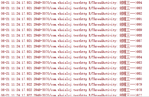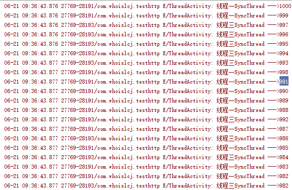 Log.e(TAG, Thread.currentThread().getName() + "--->" + count--);
