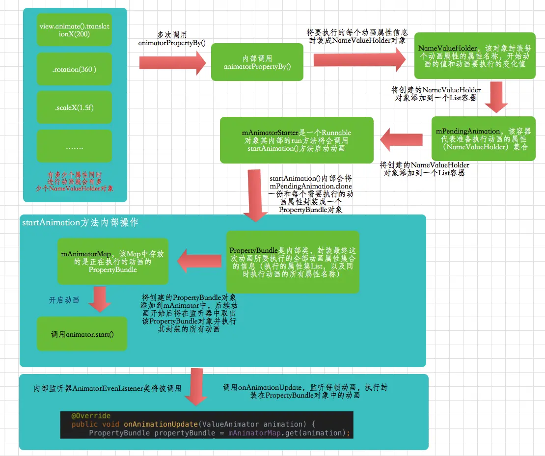 现在应该比较清晰了吧,以上就是ViewPropertyAnimator内部的大概执行流程。好~,ViewPropertyAnimator介绍到这。