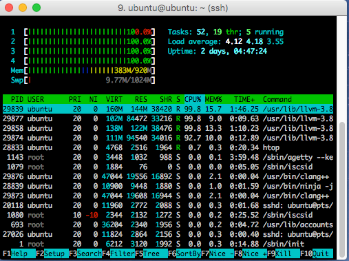 我也喜欢包含 htop 这样我就可以看看树莓派编译出的进程信息: