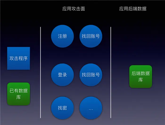 以上是在攻击者视角的一个图,对于部分公司来说,存在一个误区,即风险只是存在于登录等场景中,但是实际上,任何与后端数据库存在交互的地方都有可能被攻击者用于撞库攻击。