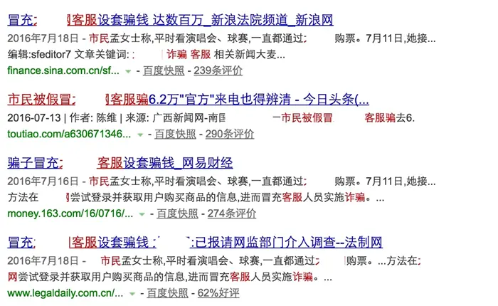 最近某票务网站就出现了这么一例case,因为骗子们知道其在该网站上的订单信息、电话和住址,因此认为骗子就是真实的该网站的客服人员,从而被引导到转款等流程中。