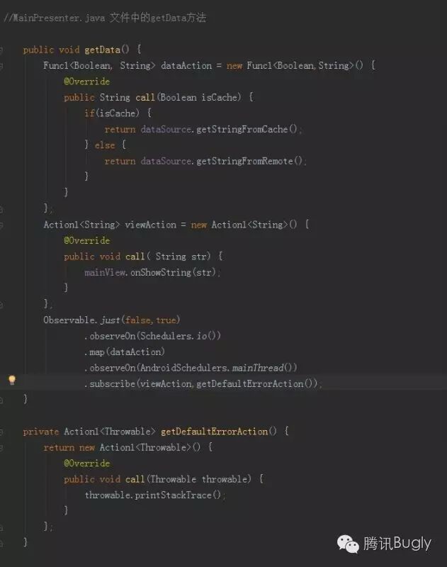 这里我们直接介绍如何使用RxJava解决这个问题,在presenter中修改方法getData()。