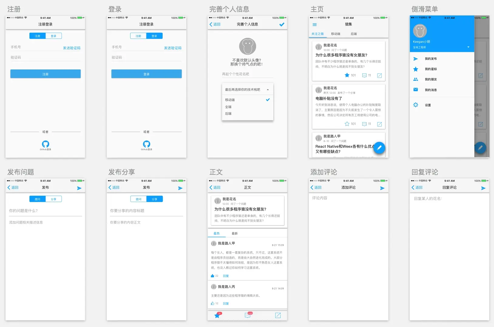 上一篇文章[原型篇]发布之后,就开始设计UI了,包括Icon和界面UI,周一到周五晚上一般花两到三到小时,周六日的时候则有五六个小时,最终用了一个星期多才设计完成。先直接展示下成果吧。