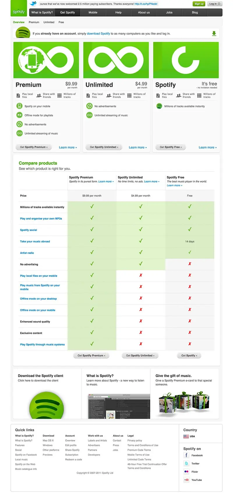 产品功能的列表相当杂乱,而且Unlimited级的订阅似乎并无必要,对用户来说有点抢钱的感觉。除了无广告,它和免费版没有任何区别(Spotify也这么认为,后来去掉了这一级)。