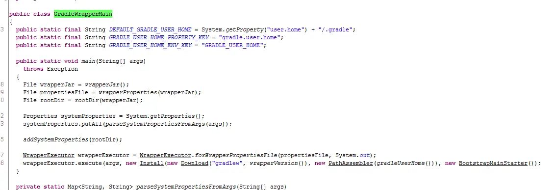 从 gradlew 脚本中,我们知道程序的入口类是 GradleWrapperMain,这时候我们发现真正的执行情况如下: