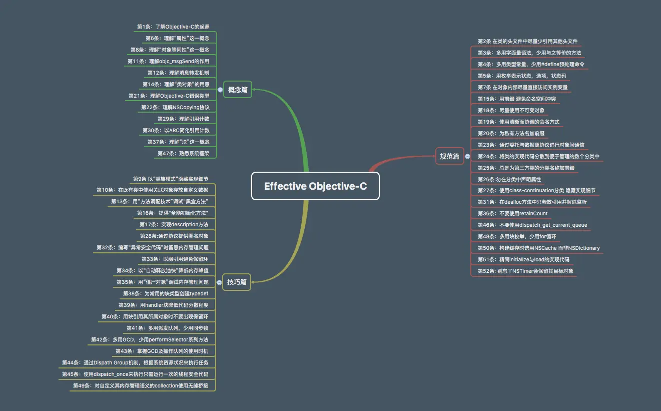 很多文章和大牛都在推荐这本书,说它讲授了很多编写Objective-C语言时所应该遵循的规范。刚好笔者前段时间因为产品刚开发完,有了一点空档期,于是用了3个星期的时间仔细研读和总结了这本书。
