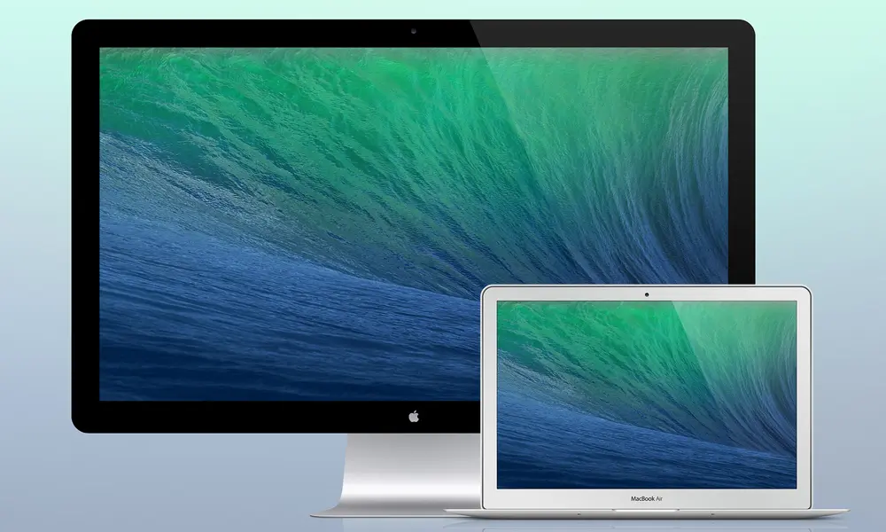 这是一组用来展示设计作品的Macbook Air 和 Thunderbolt 显示的视觉稿 PSD文档。