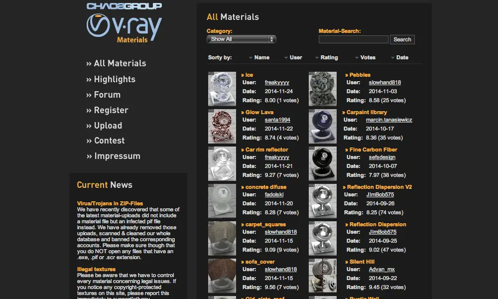 如果你是经常使用C4D的设计师的话,这个网站不要错过,其中有许多优质的贴图材质素材。