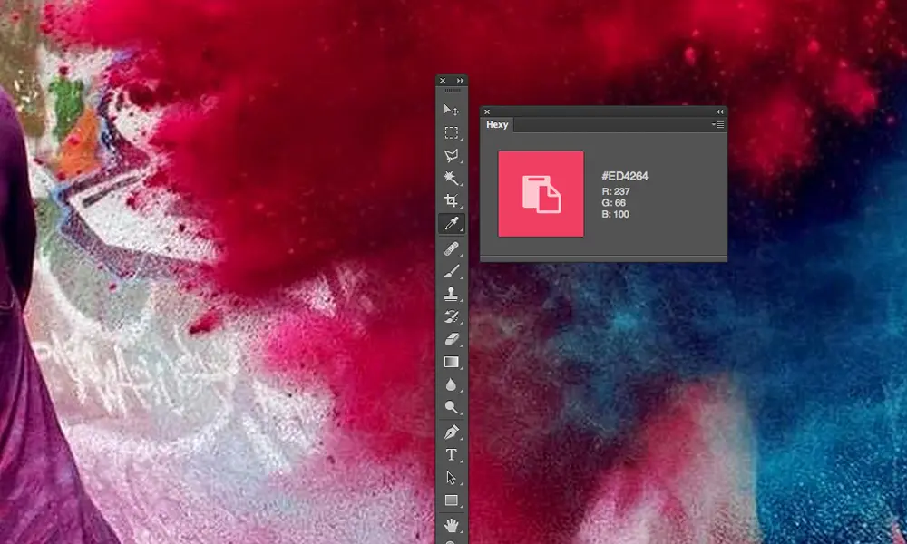 选择图层,高亮文本,然后通过拾色器来取色,有的时候是太过复杂的过程,Hexy 则非常方便,它可以使用滴管快速取色然后直接复制到剪切板当中,即取即用。