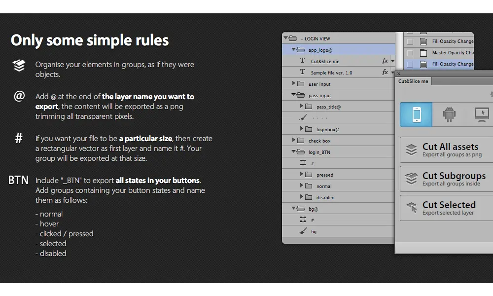 著名的Mac平台切图工具,它可以帮你在短短几分钟内搞定分组切图的工作,不过请务必记住要重命名各个图层。