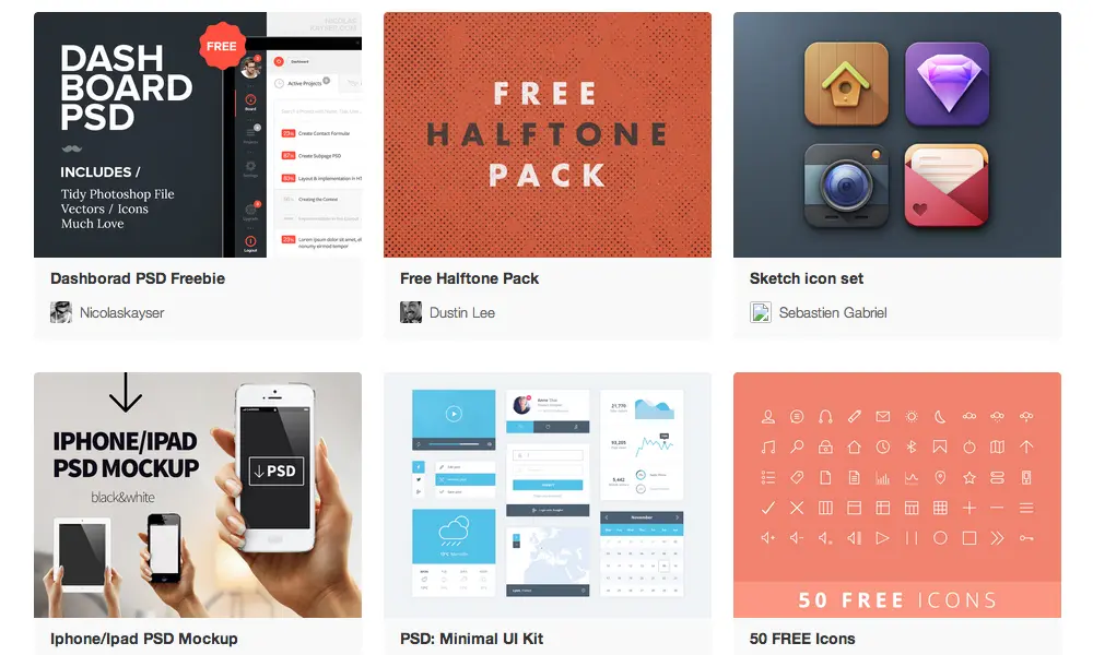 来自Dribbble的免费素材会在这个网站汇集,有图标、PSD、各类视觉稿,不一而足。