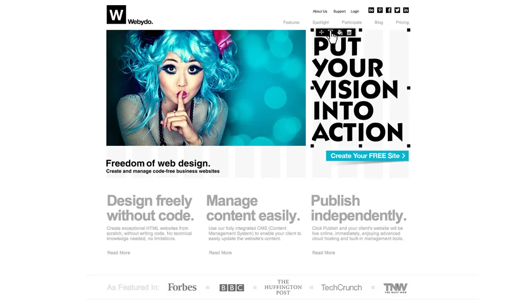 著名的无代码网站搭建平台Webydo在此,上手试试吧~