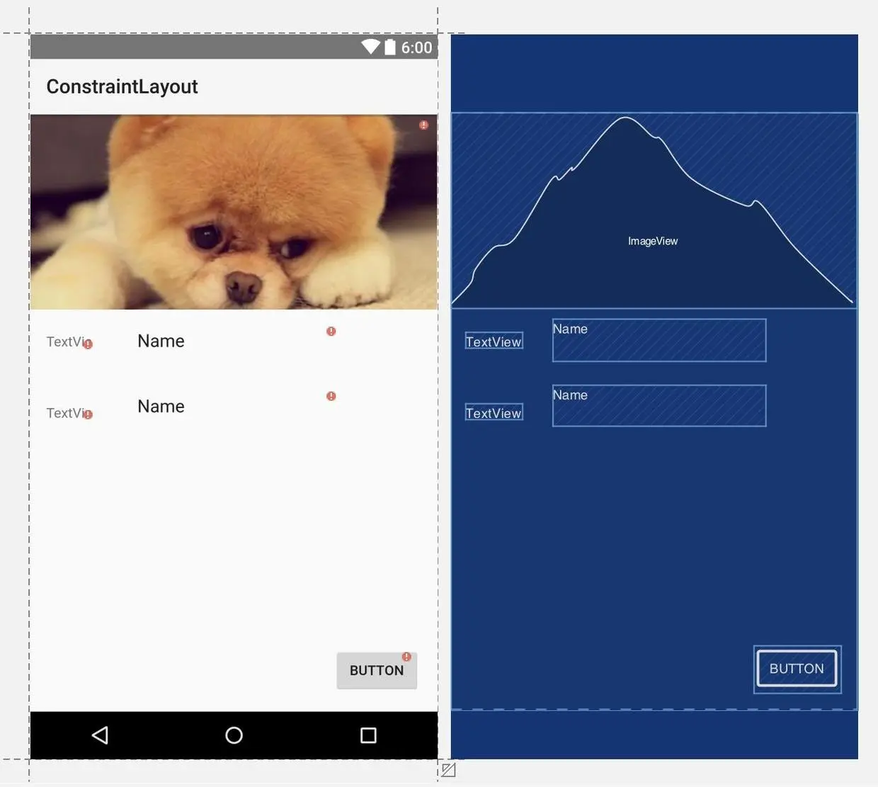 是不是很简单?从未感觉布局如此简单,如果使用传统布局进行拖动必定不能做到多屏幕适配的问题,而约束布局却不会,约束强调相互关系,并不固定位置。